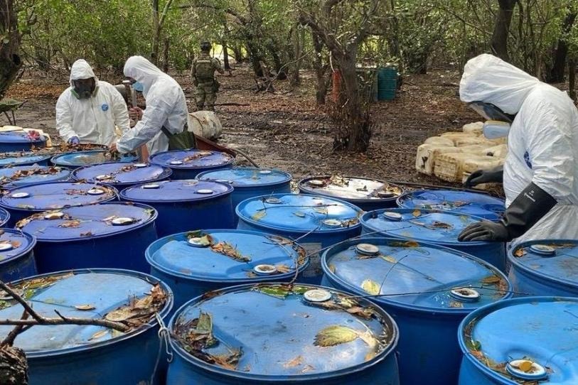 Otro frente clave ha sido la inhabilitación de laboratorios clandestinos. Desde octubre de 2024, la Marina ha neutralizado 85 centros de producción de drogas sintéticas, con el aseguramiento de más de 90 toneladas de metanfetamina y cientos de toneladas de precursores químicos. Tan solo en 2025, se contabilizan 70 laboratorios desmantelados.