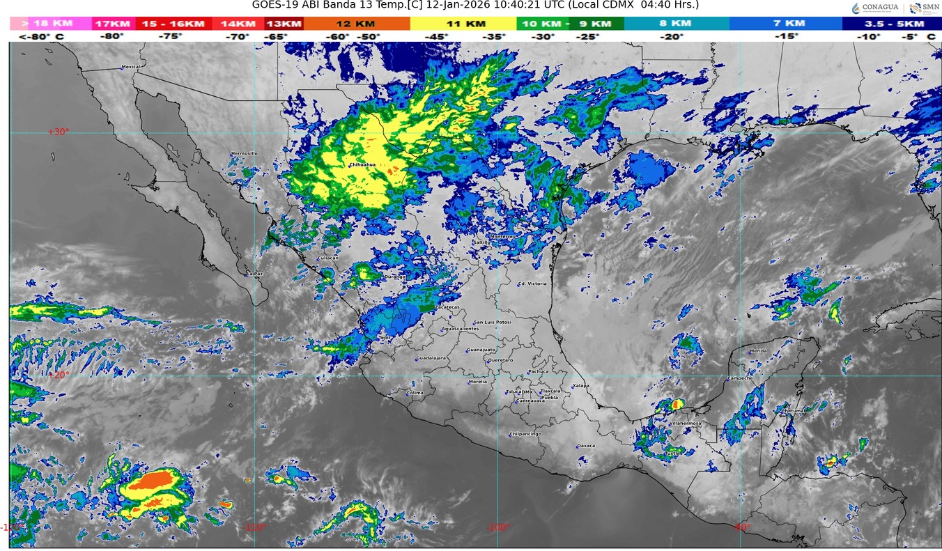 La masa de aire polar asociada al frente mantendrá el ambiente frío a muy frío durante la mañana y noche sobre el centro, oriente y sureste del país, así como evento de “Norte” fuerte a intenso en el litoral del golfo de México, istmo y golfo de Tehuantepec, condición que disminuirá durante la noche.